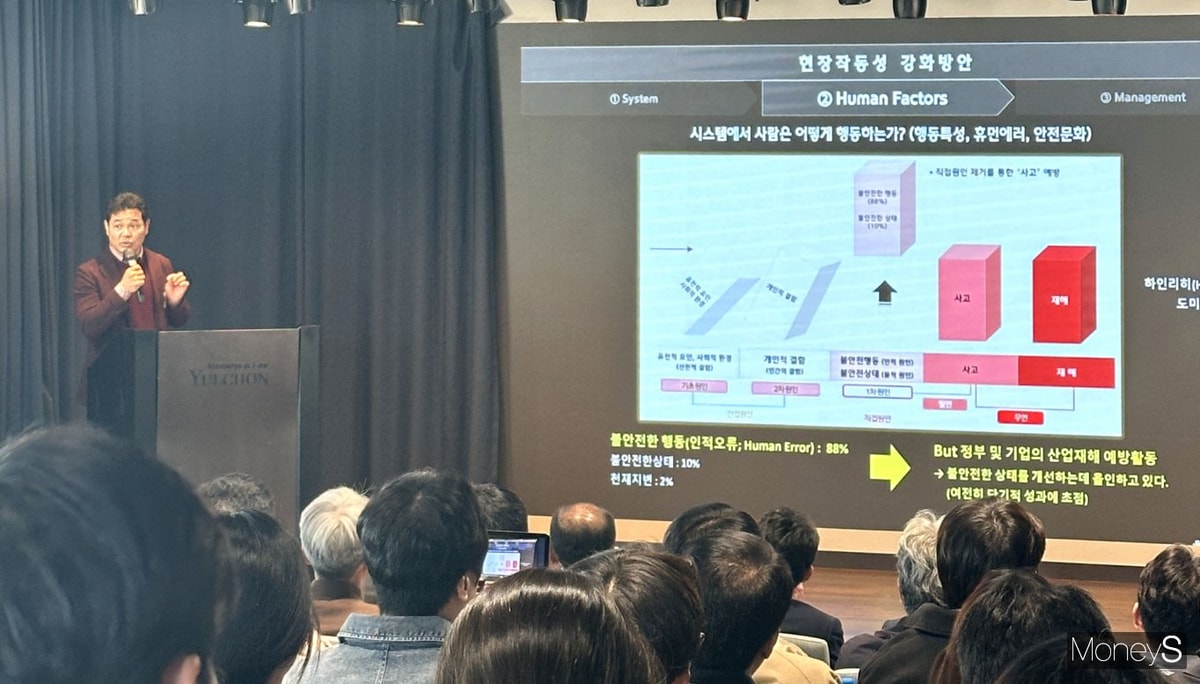 두 번째 세션에서 김재형 이노세이프경영연구원 대표는 '리더십 기반 안전거버넌스 재설계'를 발표하며 "현장 리더의 인식이 안전 수준을 결정한다"고 말했다. 그는 ▲위험상황 집중관리시스템 ▲산업심리·인간공학 기반 휴먼팩터 관리 ▲리더십 중심 거버넌스 재편을 핵심으로 꼽았다. 김 대표는 "안전은 사람이 만드는 문화"라며 "리더가 현장 위험을 즉시 인지하고 조치할 수 있는 체계가 돼야 한다"고 강조했다.