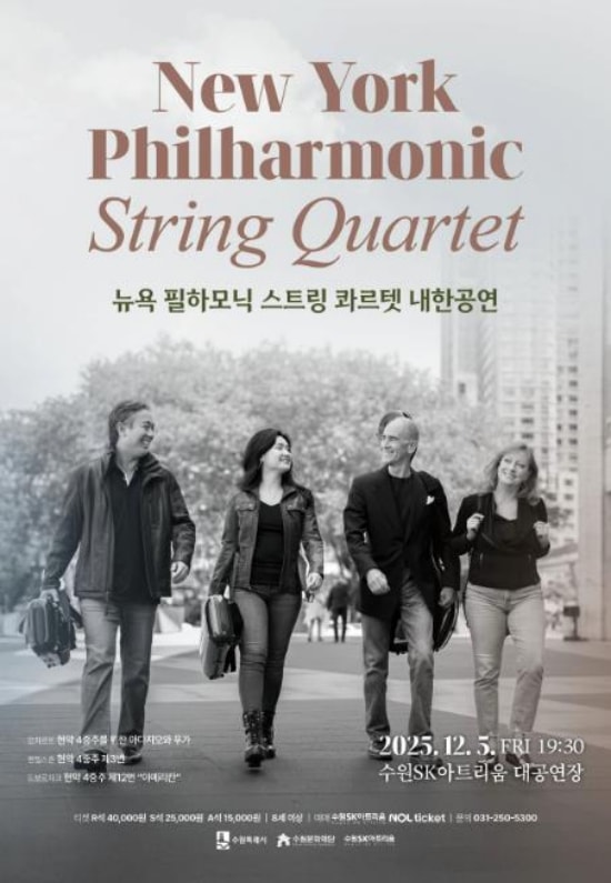 수원문화재단(대표이사 오영균)은 오는 12월 5일 오후 7시30분, 수원SK아트리움 대공연장에서 '뉴욕 필하모닉 스트링 콰르텟 내한공연'을 개최한다고 30일 밝혔다.