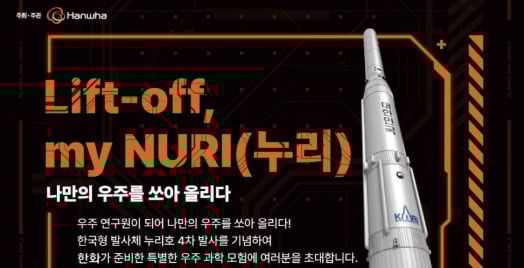 한화그룹이 11월22일 대전 KAIST 본원에서 어린이를 위한 우주과학 체험행사 'Lift-off, my NURI(누리)·나만의 우주를 쏘아 올리다'를 개최한다고 31일 밝혔다.