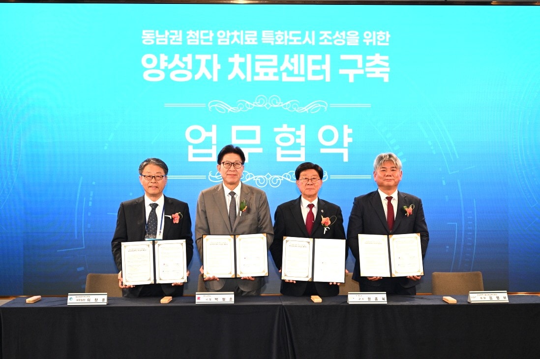 암 치료의 '꿈의 기술'로 불리는 양성자 치료센터 구축에 전격 합의하며 동남권 첨단 암 치료 특화 도시로의 도약에 가속 페달을 밟았다.