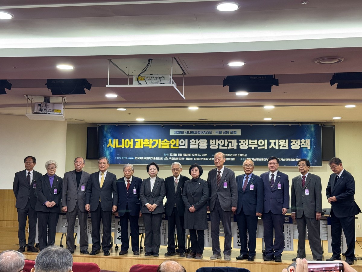 한국시니어과학기술인협회(KASSE)와 김현 의원(더불어민주당·안산시을), 황정아 의원(더불어민주당·대전 유성구을), 더불어민주당 과학기술혁신특별위원회가 10일 국회의원회관 제2소회의실에서 '시니어 과학기술인의 활용 방안과 정부의 지원 정책'을 주제로 '제28회 KASSE·국회 공동포럼'을 열었다.