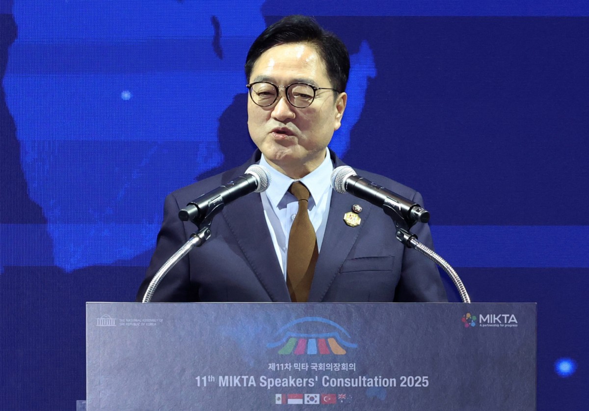 12일 우 의장은 서울 광진구 그랜드&워커힐 호텔에서 열린 '제11차 믹타 국회의장회의' 국제관계 세션에서 이같이 밝혔다. 그는 "2024년 한 해 동안만 23만9000명이 군사분쟁으로 목숨을 잃었다. 강제실향민도 1억2320만명에 달한다"며 국제 사회의 인도적 개입을 촉구했다.