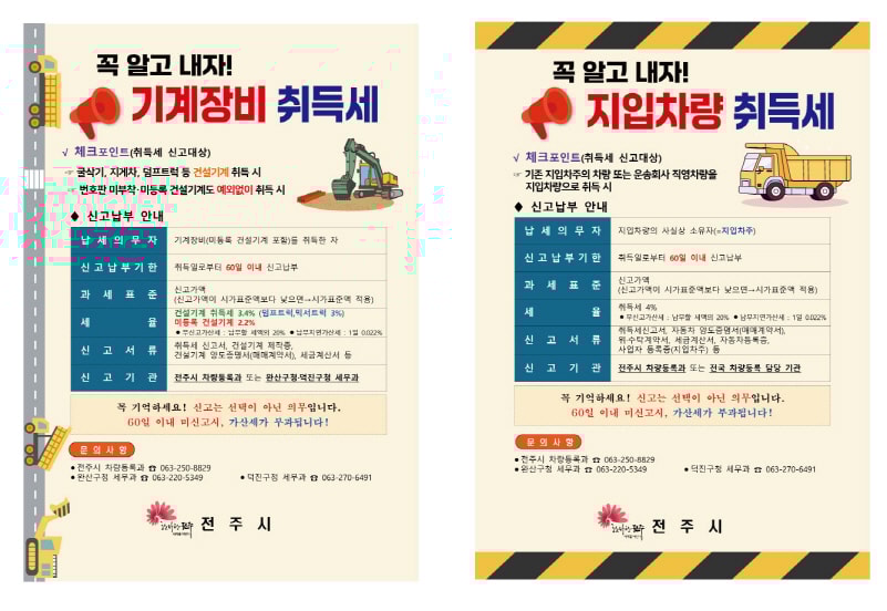 [전주 소식] "지입차량·기계 장비 취득 60일 내에 신고하세요"