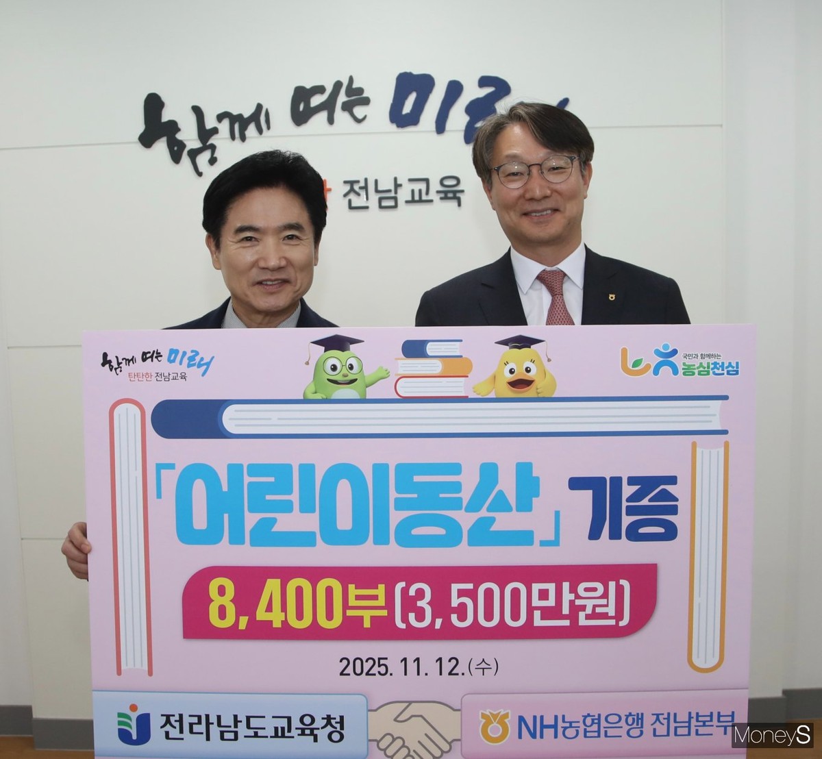 NH농협은행 전남본부는 12일 전남도교육청에서 어린이 종합 교양지 '어린이동산' 기증식을 가졌다고 밝혔다. '어린이동산'은 1984년 창간된 어린이 종합 교양지로 과학, 역사 등 다양한 콘텐츠를 다루며 2024년 문화체육관광부 우수콘텐츠로 선정된 잡지다. NH농협은행은 2019년부터 매년 전남지역의 소규모 초등학교와 탈북민 지원센터인 '전남하나센터'에 매월 700부씩 총 8400부를 제공해 오고 있다.