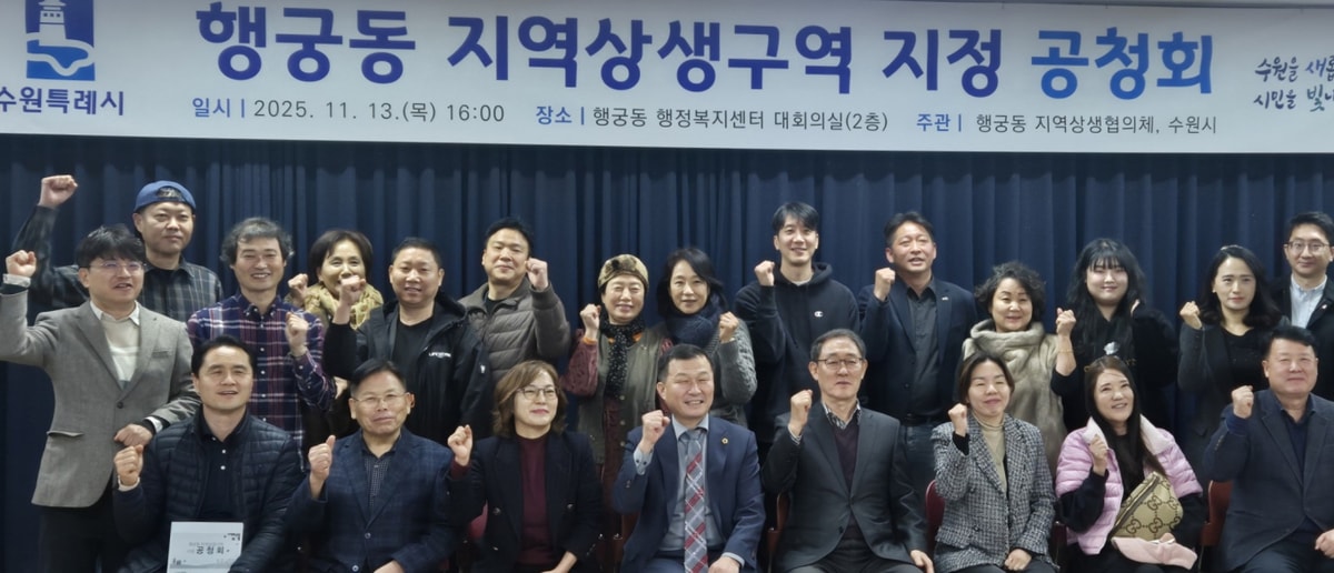 수원시 관계자는 "공청회에서 수렴한 의견을 면밀히 검토해 행궁동 지역상생구역을 지정·운영하는 데 반영할 것"이라며 "행궁동 고유의 특색을 지키면서 지속가능한 상권을 이룰 수 있도록 하겠다"고 말했다.