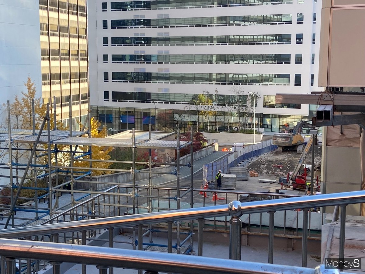 14일 오전 지하철 4호선 회현역 4번 출구에서 도보로 10분 정도 가자 하얗고 거대한 공사현장이 나타났다. 바로 앞에 도착해도 공사장인지 모를 만큼 소음은 거의 들리지 않았다. 건물 전체를 감싼 하얀 천의 정체는 방음벽이었다. 전통 발파 방식이 아닌 파쇄 공법으로 먼지와 소음을 줄여 철거가 진행되고 있었다.