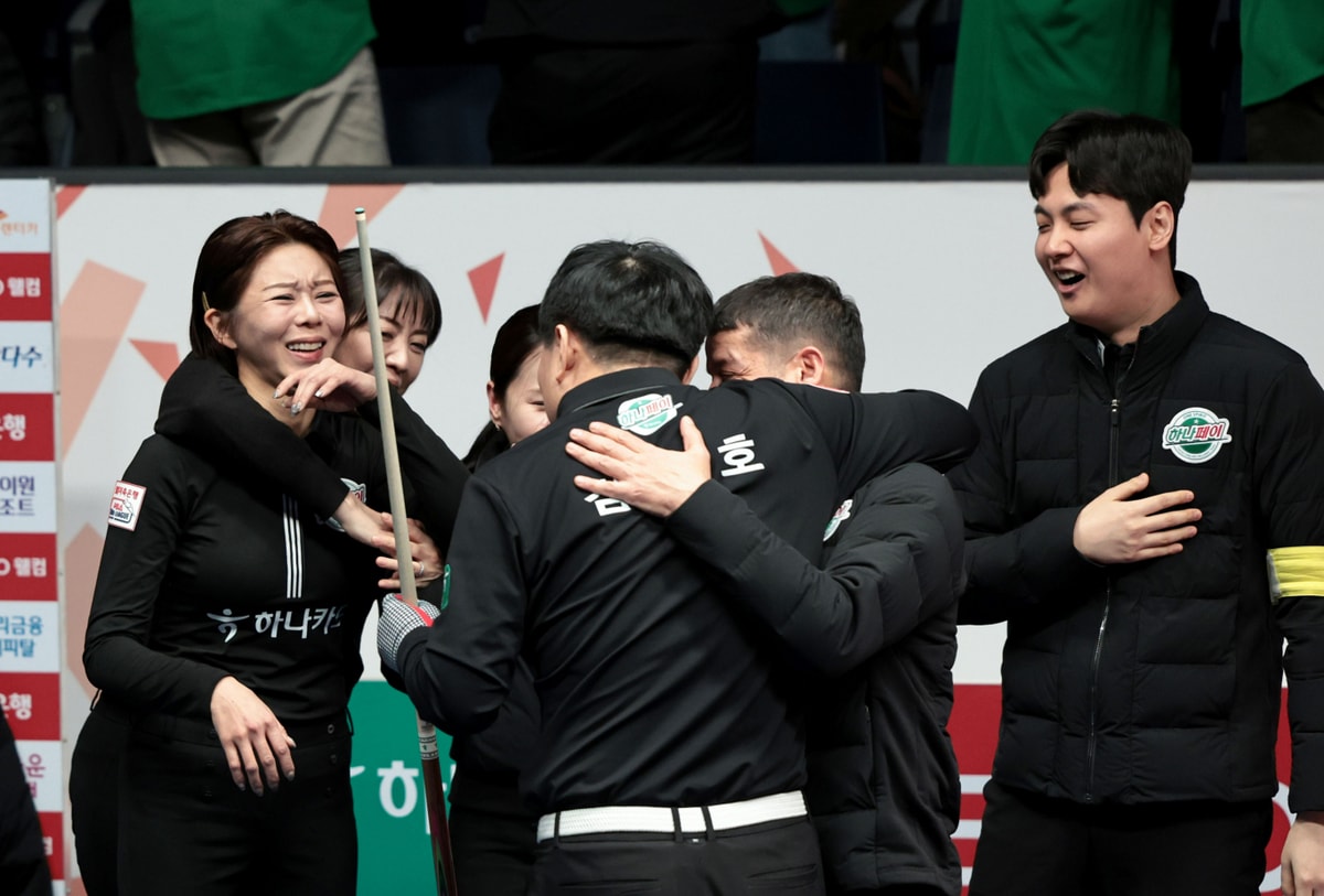 다행히 6세트(여자 단식)에 나선 김가영이 강지은을 9-8(9이닝)로 역전하며 세트스코어 3-3을 맞췄다. 7세트(남자 단식)에 나선 팀 리더 김병호는 5-10으로 뒤처진 7이닝째 1점만 내주면 패배하는 상황에서 5득점을 쓸어 담아 동점을 만들었다. 이후 8이닝째 남은 한 점을 마무리해 11-10으로 역전승을 완성했다.
