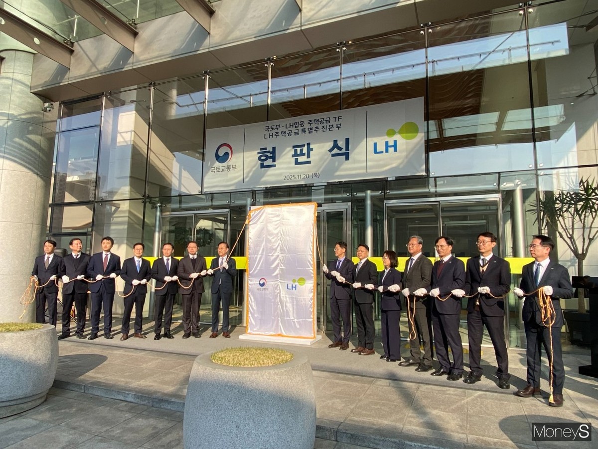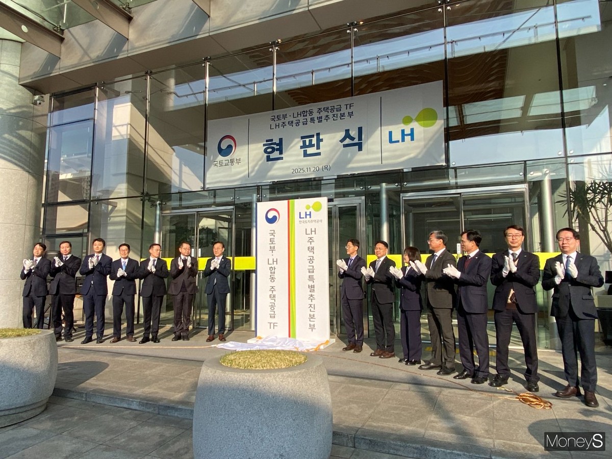 국토부와 LH는 20일 오전 서울 용산구 HJ중공업 본사에서 합동 주택공급 TF와 LH 주택공급특별추진본부 신설을 기념하는 현판식을 진행했다. 이번 합동 TF는 정부의 9·7 공급대책을 신속하게 실행하기 위해 마련된 조직으로 두 기관이 한 공간에서 근무하며 사업 진행 속도를 높이겠단 구상이다.