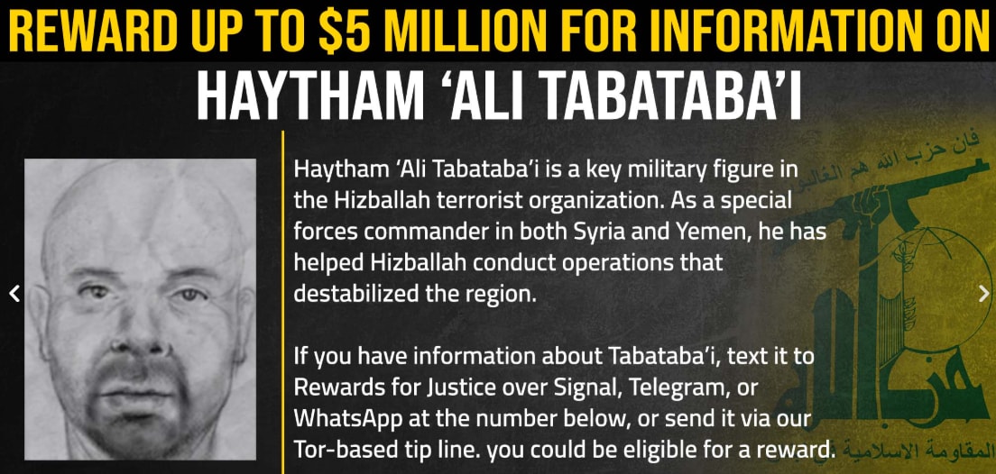 워싱턴포스트(WP) 등에 따르면 사망한 알리 타바타바이 참모총장은 예전에 정예 부대 라드완을 이끌었으며, 미 국무부는 2016년 시리아와 예멘에서 헤즈볼라 특수부대를 지휘한 혐의로 그를 테러리스트로 지정해 최대 500만달러(약 73억6000만원)현상금을 걸었다고 지적했다.
