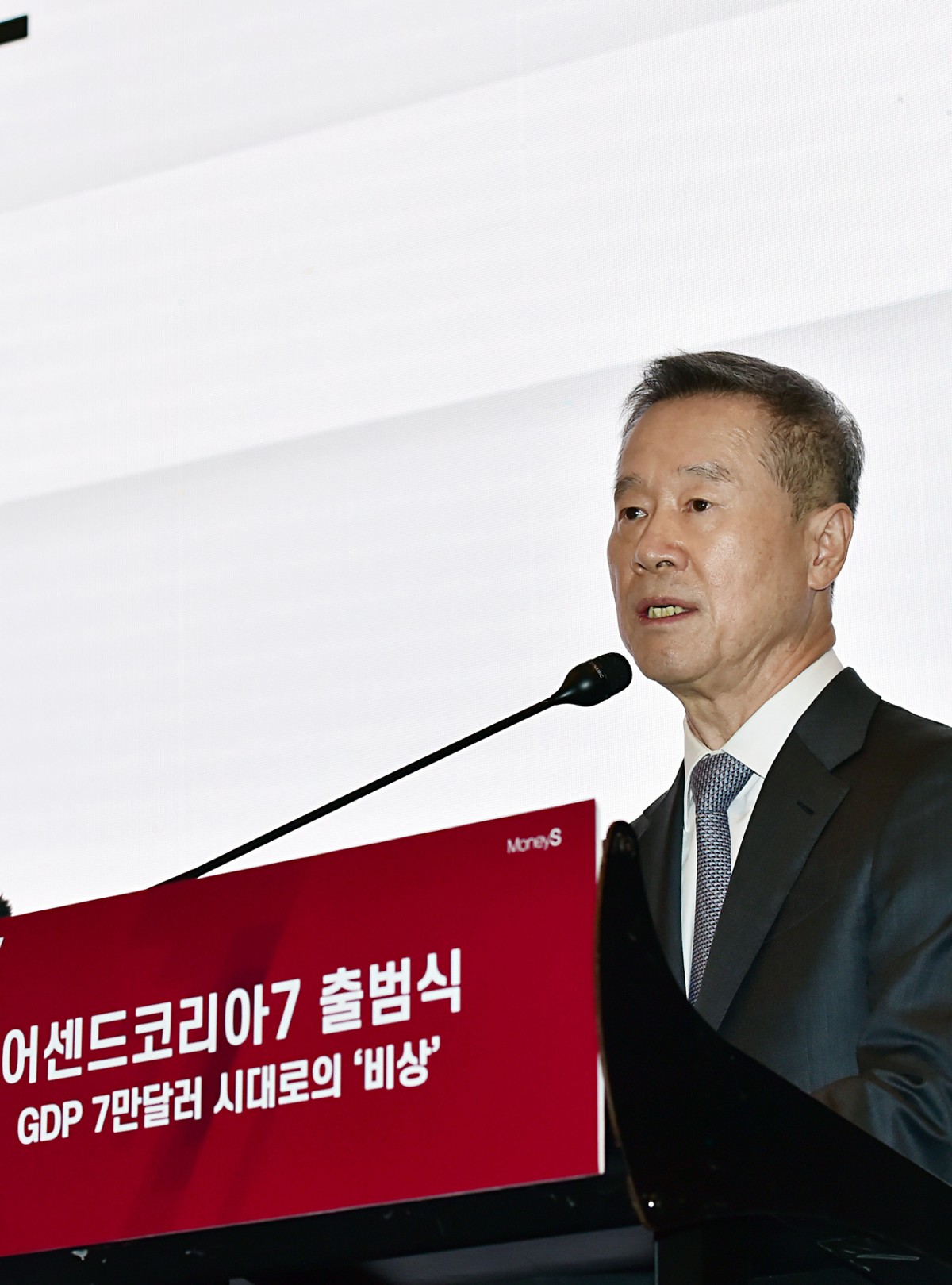홍선근 머니S 회장이 25일 서울 영등포구 여의도 콘래드 서울에서 열린 '어센드 코리아7' 출범식에서 '어센드코리아7는 왜 탄생했나'를 주제로 발표하고 있다.