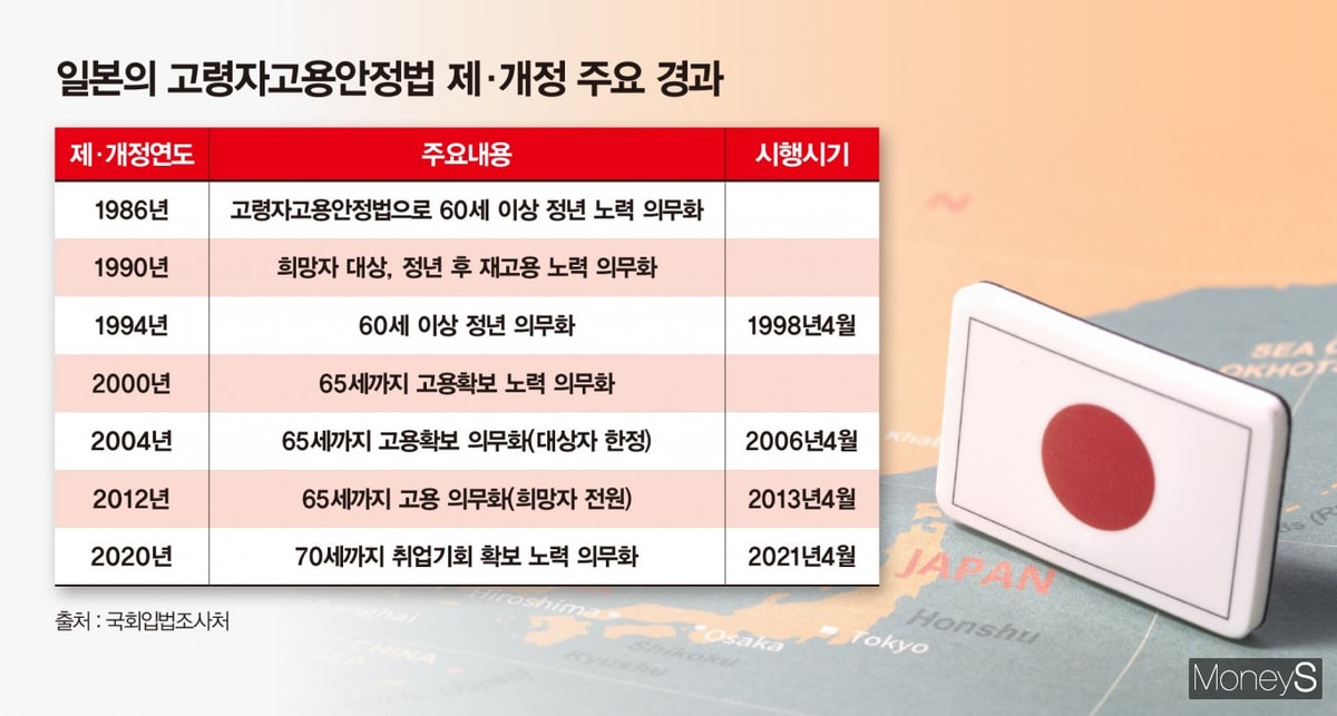 국회입법조사처의 '일본 정년 제도의 변화와 시사점' 보고서에 따르면 일본은 1960년대부터 노동계를 중심으로 정년 연장 논의를 활발하게 진행해 왔다.