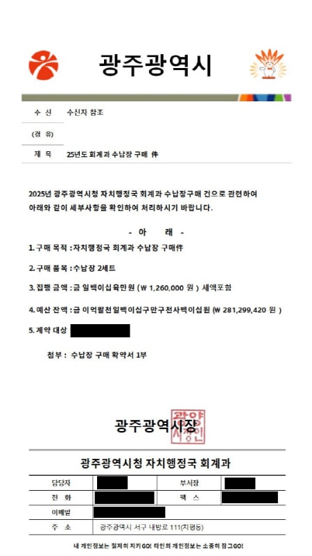 시는 공무원 명의로 제작을 요청할 때 소속 부서와 발신자 진위 여부를 확인하고 누리집 또는 대표전화(062-120)를 통해 사실 확인을 해달라고 당부했다.