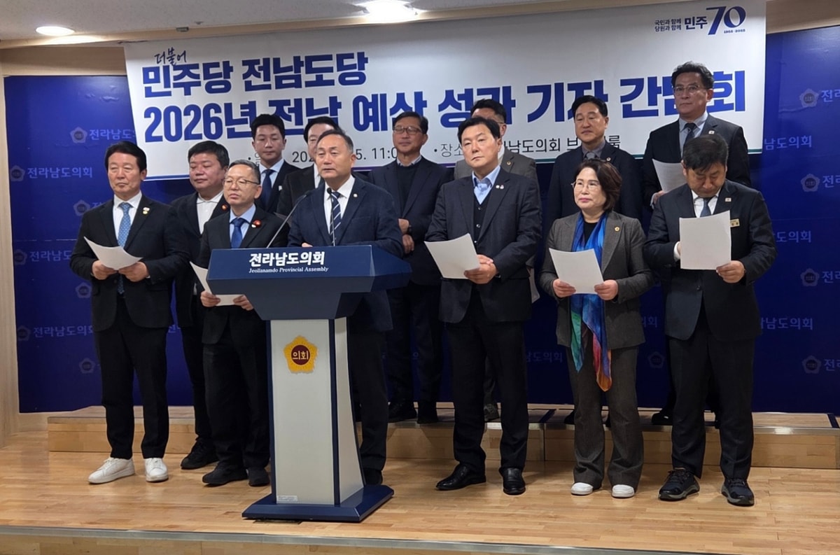 이날 내년도 전남 예산성과 기자회견에는 김원이 도당위원장, 조계현 의원, 김문수 의원과 도의원들이 참석했다.