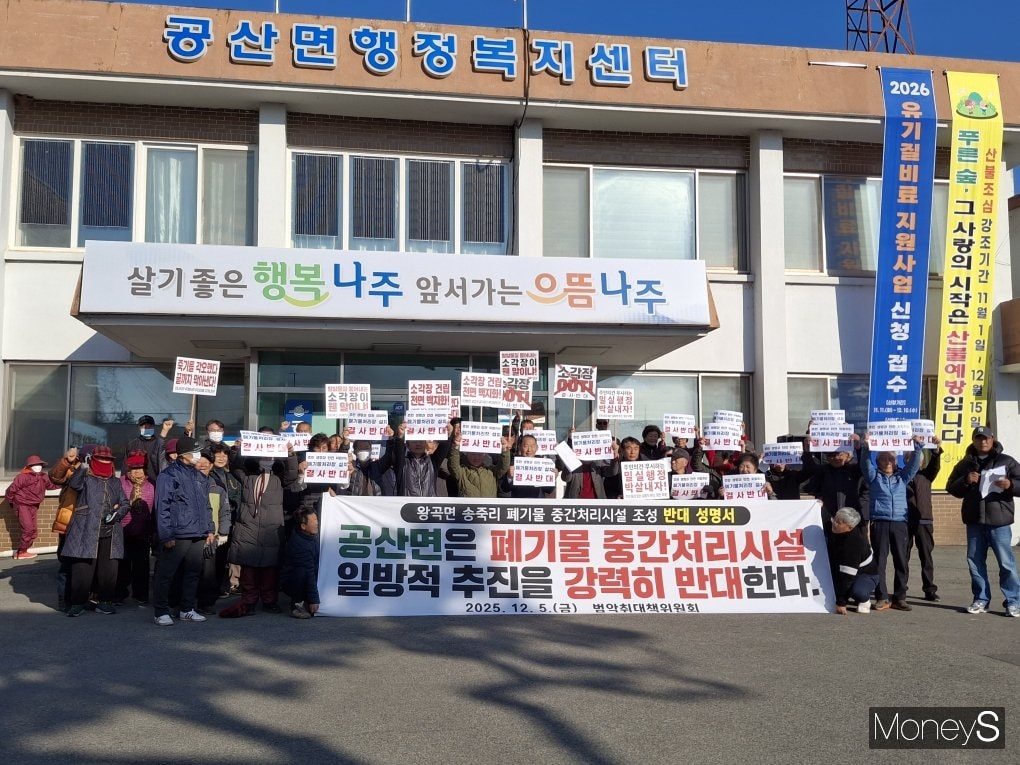 송죽리 폐기물 중간처리시설 범악취대책위원회(공산·왕곡·동강·반남·다시)는 5일 나주 공산면행정복지센터 앞에서 성명서를 내고 "왕곡면 송죽리 폐기물 중간처리시설 조성 계획을 전면 백지화하라"고 촉구했다.