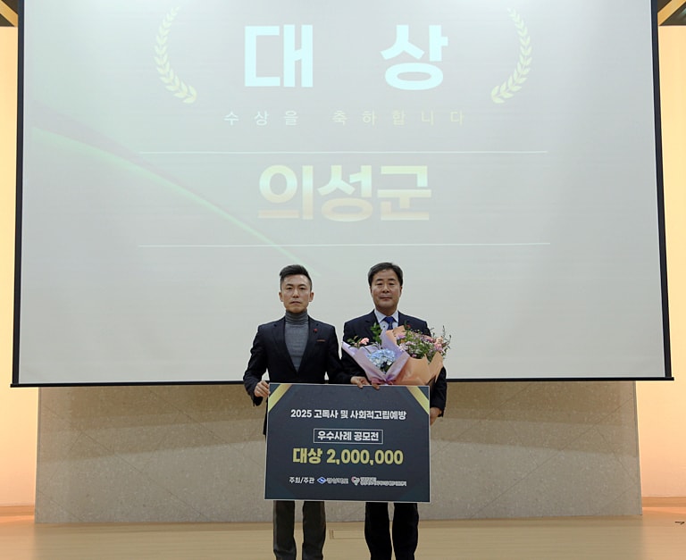 의성군이 지난 4일 경상북도에서 주관하는 '2025년 고독사 및 사회적 고립 예방 성과 보고대회'에서 우수사례 공모전 심사 결과 대상을 수상했다고 8일 밝혔다.