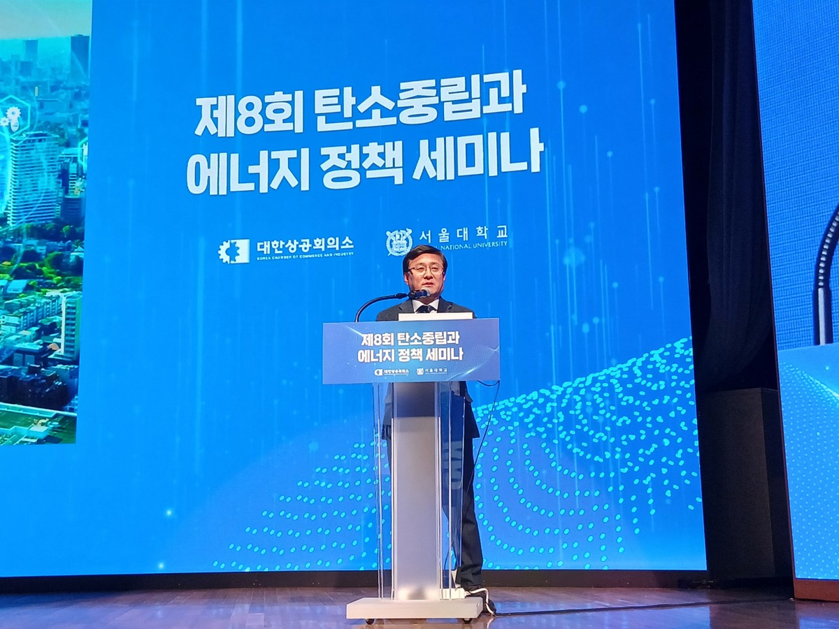 김성환 기후에너지환경부 장관이 10일 서울 중구 대한상공회의소서 열린 '제8회 탄소중립과 에너지 정책 세미나' 기조 강연에 나서 "석탄과 LNG를 줄이고 재생에너지와 원전을 믹스하는 것이 대한민국의 에너지 정책상 유일한 대안"이라고 강조했다.