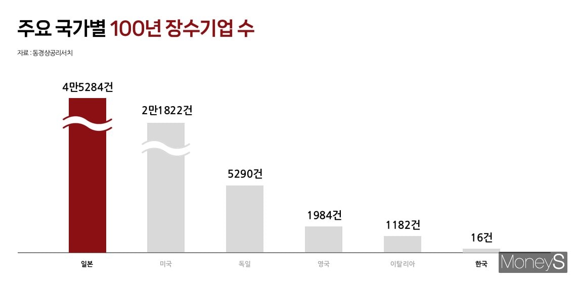 한국에서 100년 이상의 역사를 가진 기업은 지난해 기준 16곳에 그친다. 일본(4만5284개), 미국(2만1822개), 독일(5290개) 등과 비교하면 '장수기업의 토양'이 얼마나 빈약한지 드러나는 대목이다. 경영계에서는 "안정적인 기업 승계야말로 장수기업을 키우는, 지속가능한 경제를 떠받치는 인프라"라며 새 정부에 가업승계제도 개선을 촉구하고 있다.