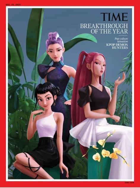 지난 9일(이하 현지시각) 타임은 케데헌을 '2025 올해의 돌파구'로 선정한 후 오는 29일 자 표지에 주역 캐릭터 루미·미라·조이를 전면 배치했다. 타임은 브루클린에서 열린 싱어롱 상영회가 연일 매진된 것을 언급하며 "아이들뿐 아니라 어른들까지 노래를 따라 부르며 몰입했다"고 밝혔다.