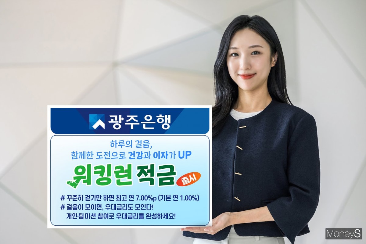 광주은행은 11일 일상 속 걷기 실천만으로 최고 연 7.0% 금리를 받을 수 있는 참여형 금융상품 '워킹런(Walking Run) 적금'을 출시했다고 밝혔다.