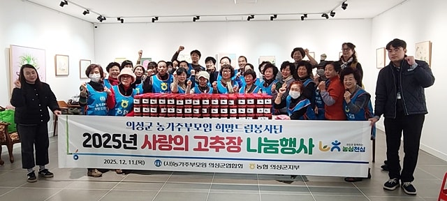 이진석 농협 의성지부장은 "추운 겨울 소중한 마음을 모아 지역사회에 온정을 전하게 되어 기쁘다"며 "앞으로도 '농심천심운동'을 통해 지역과 상생하는 나눔 활동을 꾸준히 이어가겠다"고 말했다.