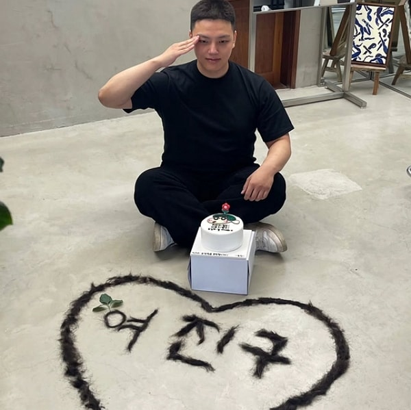 여진구는 입대 하루 전인 지난 14일 짧게 자른 머리를 공개해 이목을 끌었다. 사진을 보면 케이크 앞에 앉은 그는 머리카락으로 하트와 자신의 이름을 만든 뒤 경례하는 모습이다.