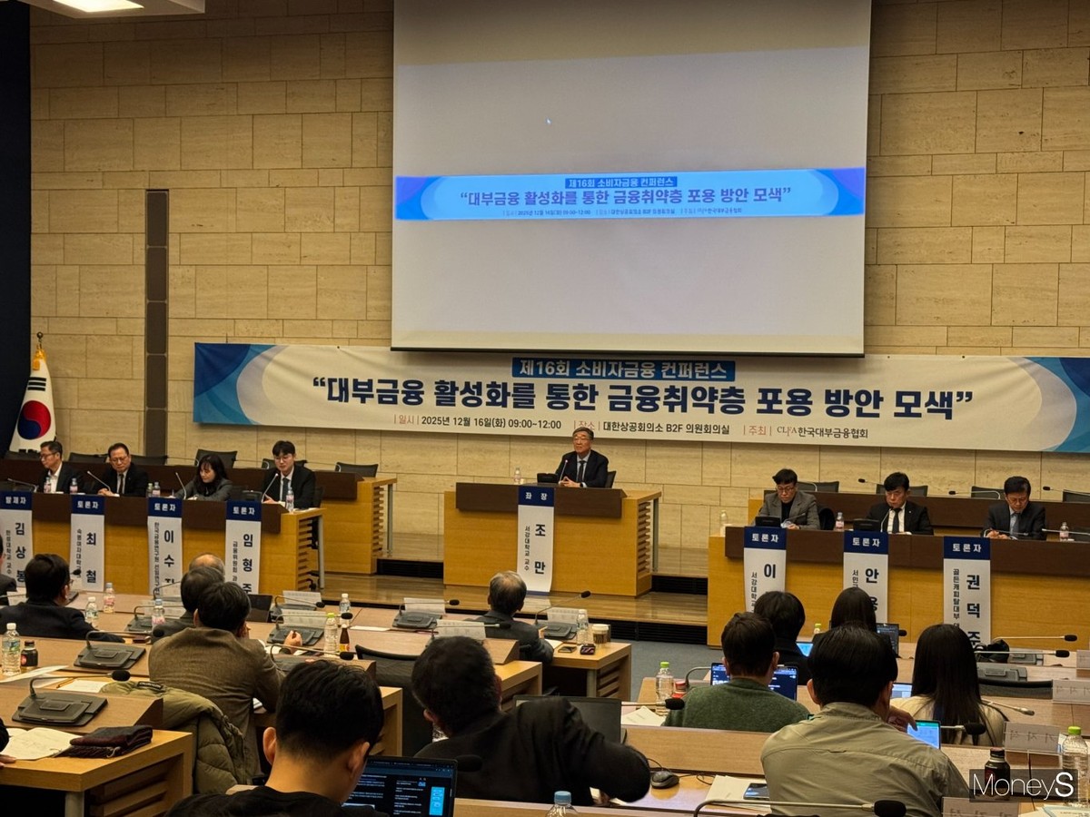 한국대부금융협회는 16일 오전 서울 중구 대한상공회의소에서 '대부금융 활성화를 통한 금융취약층 포용방안 모색'을 주제로 제16회 소비자금융 컨퍼런스를 개최하고 대부금융업계의 현안과 제도 개선 과제를 논의했다. 이날 행사에는 금융당국과 학계, 대부금융사 관계자 등 100여 명이 참석했다.