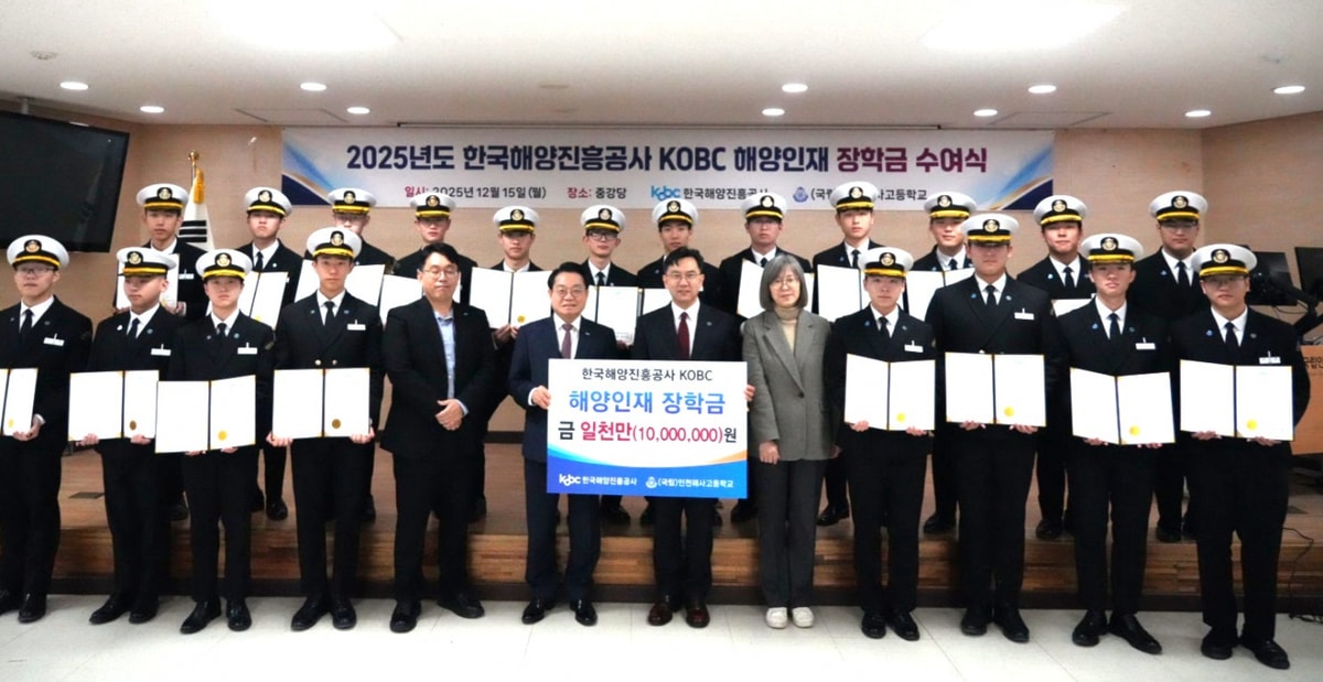한국해양진흥공사는 지난 15일 인천해사고등학교에서 차세대 해운산업을 이끌어갈 예비 해기사들을 위한 'KOBC 해양인재 장학금' 수여식을 개최했다고 17일 밝혔다.