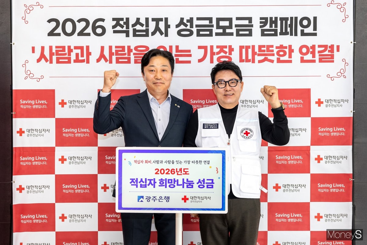 광주은행은 지난 17일 연말연시 이웃돕기 특별 모금방송 '나눔이 희망입니다'에 성금 3000만원을 전달했다고 18일 밝혔다. 이번에 전달된 성금은 대한적십자사를 통해 재난 구호 활동과 취약계층 지원을 위한 무료급식소 운영 기금 등으로 사용될 예정이다.