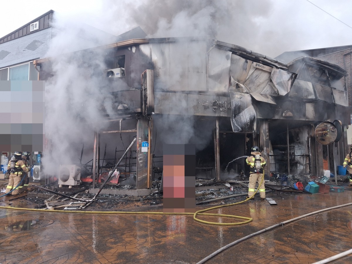 전남 영암군 시종면의 한 중식당에서 20일 오전 7시37분쯤 화재가 발생해 건물이 모두 불에 탔다.