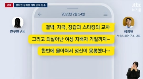 "결박·스타킹" "도구 주문해 특정 행위 요구"… 정희원 카톡 공개
