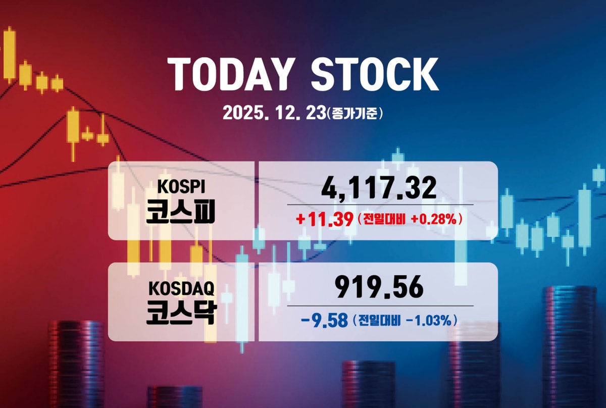 한국거래소에 따르면 코스피는 전 거래일 대비 11.39포인트(0.28%) 오른 4117.32에 장을 마쳤다. 코스닥은 전 거래일 대비 9.58포인트(1.03%) 내린 919.56으로 마감했다.