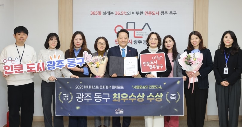 광주광역시 동구가 '2025 매니페스토 문화정책 콘체르토'에서 문화활동 활성화 분야 최우수상을 수상했다.