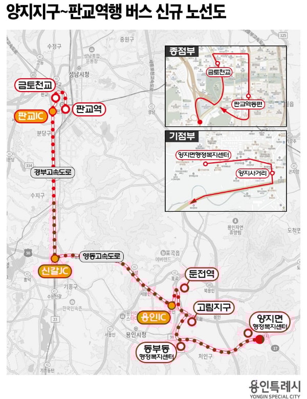 용인 양지지구를 출발해 고림동과 둔전역을 거쳐 성남 판교역까지 운행하는 버스 노선이 경기도 광역 공공버스 노선위원회 심의에서 최종 선정됐다.