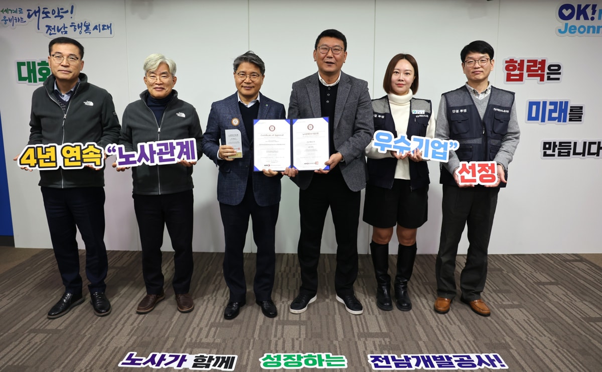 전남개발공사가 4년 연속 노사관계우수기업 인증을 획득했다.
