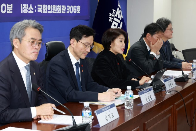 한정애 더불어민주당 정책위의장은 30일 오전 서울 여의도 국회에서 진행된 보이스피싱 태스크포스(TF) 당정 협의에 참석해 "2026년은 보이스피싱 범죄 근절이 되는 원년이 되도록 최선을 다할 것"이라며 이같이 전했다.