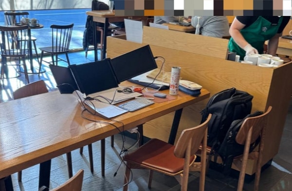 모니터만 3개+좌석 4개 점령한 스벅 빌런… "카공족 끝판왕"
