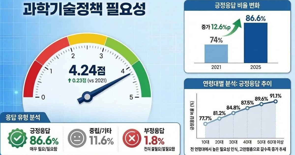 6일 경기도경제과학진흥원(이하 경과원)이 발표한 '2025년 경기도민 과학기술 인식도 조사' 결과에 따르면, 응답자의 90.3%가 과학기술 발전이 국가 경쟁력 강화와 경제성장에 필수적이라고 답했다. 특히 경기도 차원의 과학기술 정책이 필요하다는 응답도 86.6%에 달해, 지방정부의 주도적인 역할에 대한 도민들의 공감대가 확인됐다.