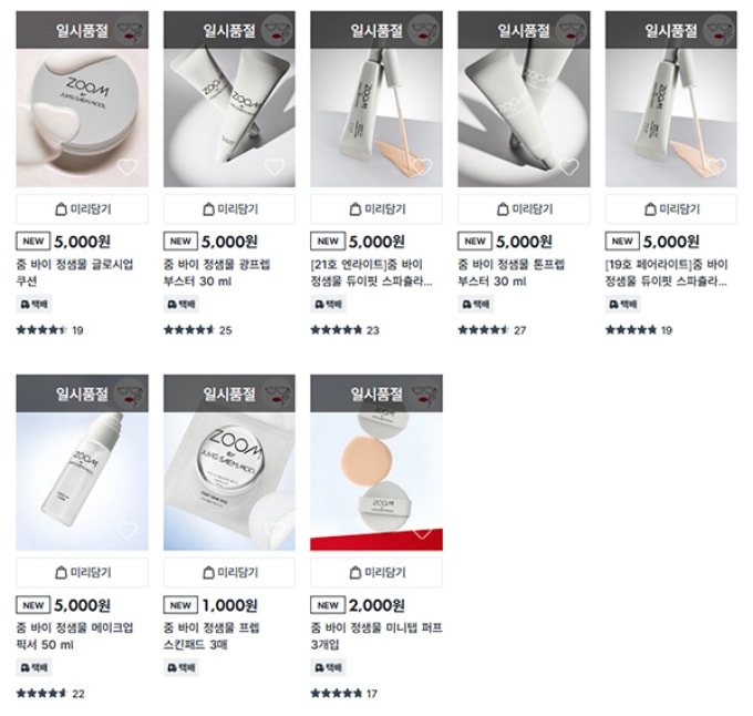 다이소가 국내 정상급 메이크업 아티스트 정샘물과 협업해 다이소 전용 브랜드 '줌 바이 정샘물'을 선보인 후 출시 직후부터 품절 행진을 이어가고 있다.