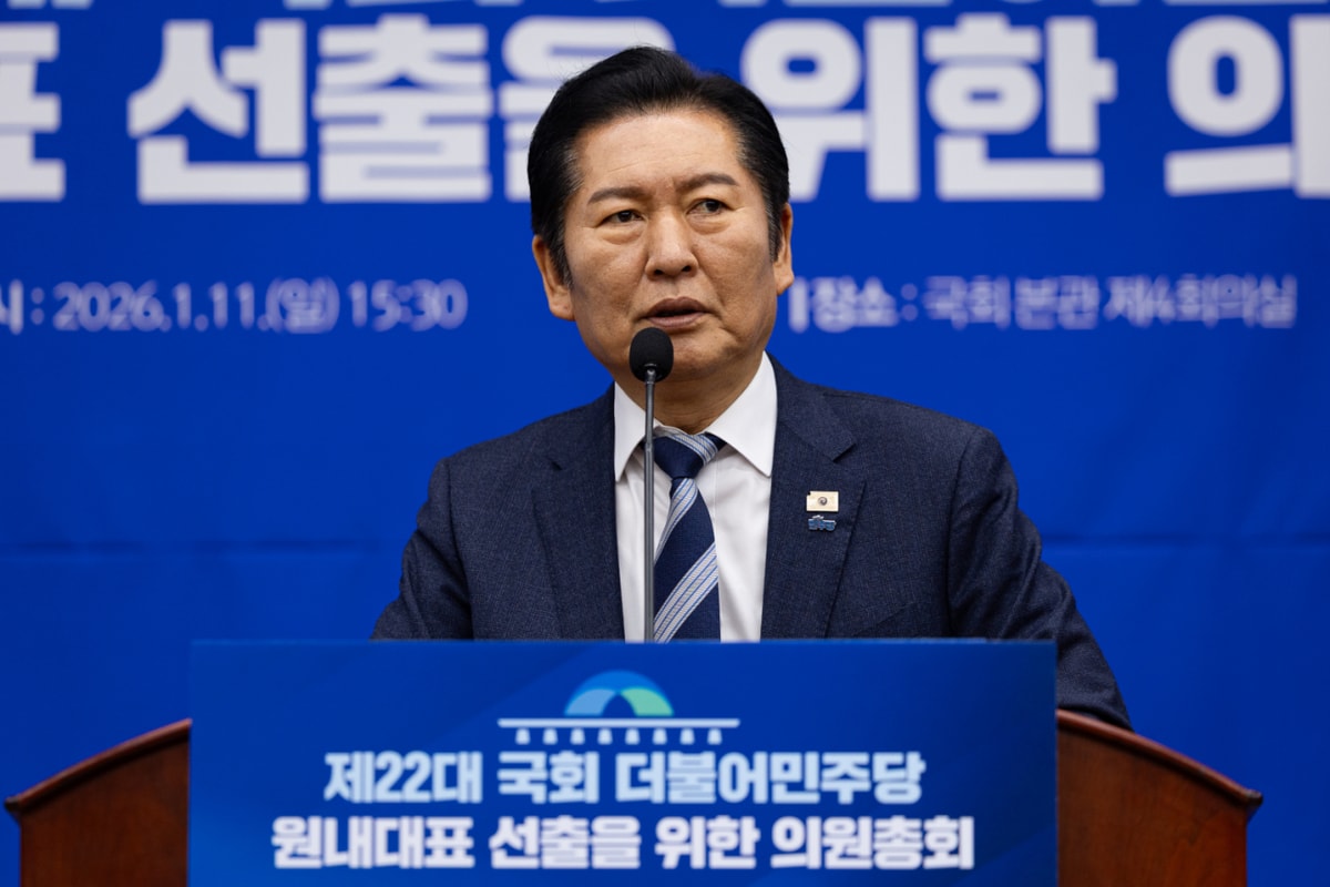 정청래 더불어민주당 대표가 "어느 분이 원내대표로 선출되더라도 저와 함께 손잡고 과제를 하나하나 신속하고 정확하게 해결해야 한다"고 밝혔다.