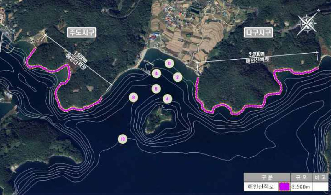 창원 주도·다구지구에는 길이 3.5km의 해안산책로가 조성돼 남파랑길 11코스의 단절 구간이 해소된다. 사천 실안지구에는 해상탐방로와 해안관광로를 조성해 삼천포 바닷길, 이순신 승전지 순례길 등 인근 관광사업과 연계한 친수공간이 마련된다.