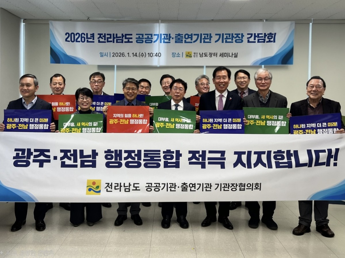 14일 지역정가에 따르면 전라남도 공사·출연기관장으로 구성된 전남도 공공기관장협의회는 이날 나주시 소재 재단법인 남도장터 회의실에서 도내 공사와 출연기관 기관장 13명이 참석한 가운데 '2026년 전라남도 공사·출연기관 기관장 간담회'를 개최했다.