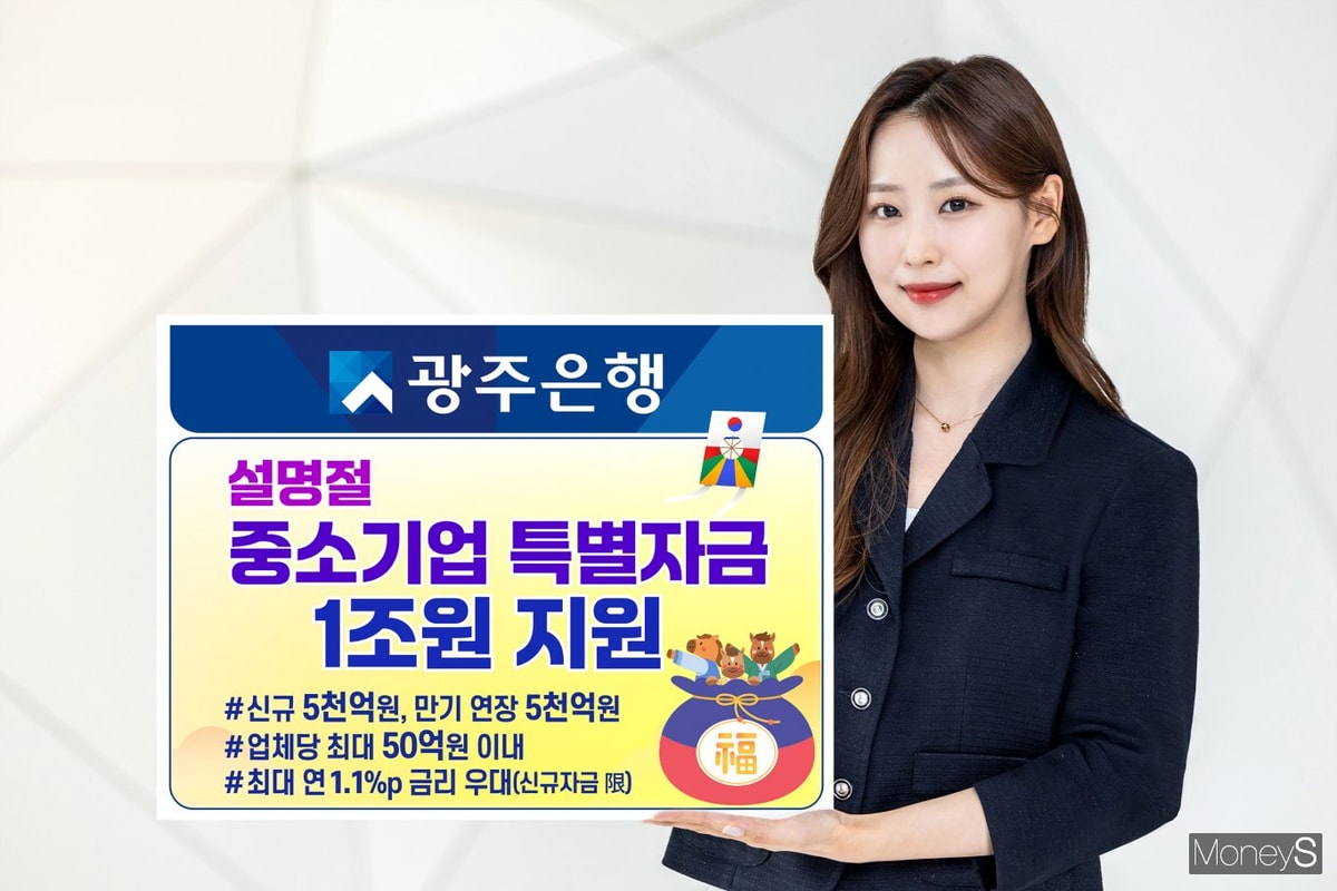 광주은행은 설 명절 연휴를 앞두고 자금 운용에 어려움을 겪는 지역 중소기업과 소상공인을 위해 오는 2월27일까지 총 1조원 규모의 '2026년 설 명절 중소기업 특별자금'을 지원한다고 15일 밝혔다.