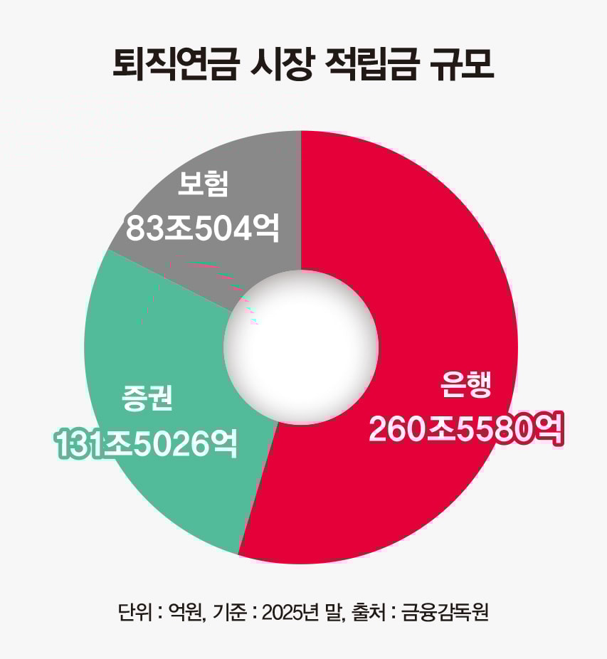 이처럼 최근 증권사들이 퇴직연금 시장에서 두각을 나타내는 것은 수익률 격차가 지목된다. 실제 2025년 4분기 기준 KB증권의 DC형(원리금 비보장) 수익률은 23.32%로 KB국민은행(19.11%)을 앞섰다. NH투자증권도 23.22%로 NH농협은행(21.55%)보다 높은 수익률을 기록했다. 신한투자증권도 22.87%로 신한은행(19.84%)보다 많았다.