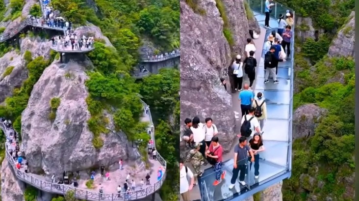 최근 온라인 상에 '한국에서 가장 위험한 다리' 등의 제목으로 산과 산을 잇는 도로와 유리 다리를 건너는 탐방객 모습이 담긴 영상이 확산됐다. 이 영상에는 "한걸음 내딛는 순간 심장이 내려앉을 정도로 놀라움을 느꼈다", "투명 소재로 만들어져 마치 허공을 걷는 듯한 착각을 준다", "개장 첫날부터 사람들이 몰렸다"는 설명이 더해졌다.