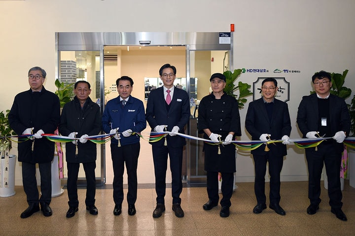 HD현대삼호는 22일 영암군 삼호읍 한마음회관에서 김재을 사장을 비롯해 영암시니어클럽 장영범 관장, 우승희 영암군수 등 관계자 200여명이 참석한 가운데 'The 기찬밥상 Premium 개소식'을 열었다.