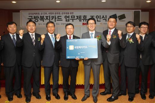 KB국민카드는 지난 5일 오후 서울 용산 국방회관에서 KB국민카드 심재오 사장과 군인공제회 C&C 남궁균 사장이 참석한 가운데 ‘국방복지카드 업무 제휴 협약’을 체결했다.
