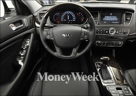 기아자동차가 15일 서울 강남구 압구정동 국내영업본부 사옥에서 'K7 2015' 발표회를 갖고 있다. 'K7 2015'는 크롬 라디에이터 그릴을 신규 적용하고 리어 콤비네이션 램프 점등 이미지를 기존보다 날렵하게 디자인했다. 내부 또한 고급스러움을 강조해 우드그레인 인테리어를 적용하고 글로브박스 버튼, 도어 스피커그릴 등을 크롬으로 꾸몄으며, 레드브라운 인테리어를 추가로 적용했다.