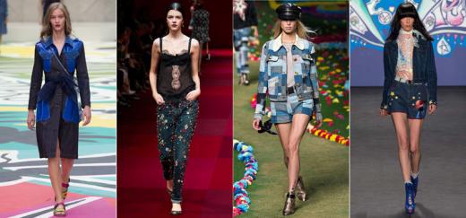 2015 S/S 런웨이 쇼 중 단연 돋보인 것은 70년대 무드가 가미된 패치워크 데님의 향연이었다. ‘버버리 프로섬(BURBERRY PRORSUM)’에서는 가죽과 레이스로 장식한 패치워크 형식의 데님 트렌치코트를 선보였고, ‘돌체앤가바나(Dolce&Gabanna)’에서는 화려한 주얼리 장식이 돋보이는 데님 팬츠를 공개해 섹시한 매력을 발산했다.