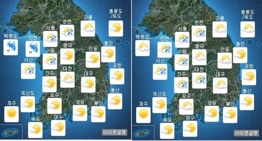 오늘(2일) 오전(왼쪽), 오후 날씨 /사진=기상청 제공