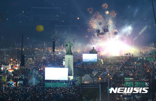 한편 지난 4개월 촛불집회를 주도해 온 민주노총 등 1500여개 시민사회단체 연대체인 박근혜정권퇴진 비상국민행동은 이날로 주말 정기 집회를 마무리하고 오는 25일과 4월 16일 다시 집회를 마련하기로 했다. 이날 마지막 집회에는 모두 50만명이 모인 것으로 집계됐다.